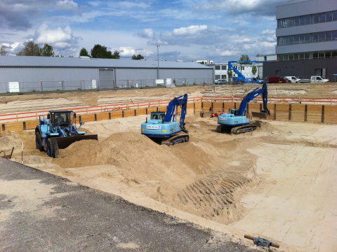 Aushub und Verwertung von ca. 18.500 m³ Boden, Herstellung von ca. 720 m² Berliner Verbau und Betreiben einer geschlossenen Wasserhaltung