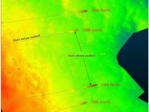 One key aspect of the design requirements for such cable landfalls is a need to conform with minimum separations between drills which varies with the depth of the drill below ground level (the deeper the drill, the greater the separation). In order to ensure that these criteria had been met, geophysical surveys at the drill exit points were performed for each drill so the actual exit point was known and the as-built could be adjusted to reflect this data. This process worked well, was costeffective