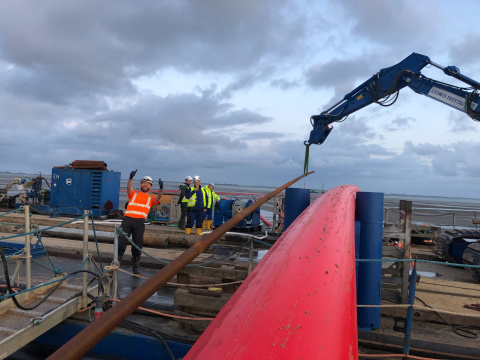The drilling exit points of the “Norderney-Süd” drilling carried out in 2023 are located in the tide-influenced tidal flat area. Due to the dependence on the water level and the special regulations on soil and environmental protection, the accessibility of the construction site poses a special challenge.