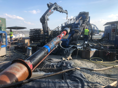 During the towing processes of the sub-strings, the drilling work was already in progress, so that the pipes could be coupled and retracted in time with the completion of the borehole.
