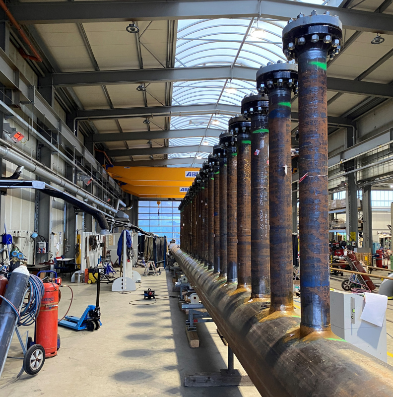 In addition to the implementation planning for the pipes and the steel support structure, pipe systems up to DN600 are completely prefabricated in the factory, including testing, coating and insulation, and installed on site.