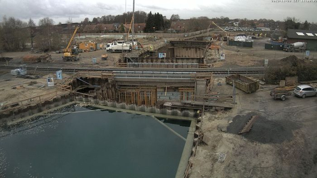 Die Herstellung des Rahmenbauwerkes mit Eisenbahnbrücke erfolgte neben der vorhandenen Gleistrasse. Die Brückenplatte wurde Anfang September betoniert. Das fertige, etwa 1400 Tonnen schwere Bauwerk wurde in einer 52-stündigen Sperrpause mittels Hydraulikpressen in die Gleistrasse geschoben und dort fixiert, teilte die Stadt Vechta mit. Es ersetzt die im März 2013 eingebaute Hilfsbrücke.