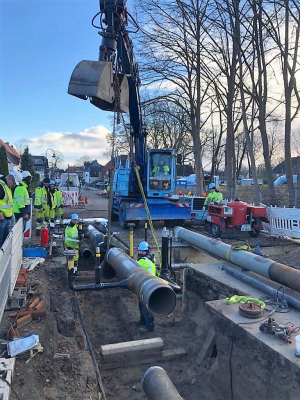 Die Leitung “An der Kämenade” in Bremen wurde für diese Maßnahme einseitig gestoppelt, da das vorgeschaltete Netz nicht außer Betrieb genommen werden konnte. Auch diese technisch anspruchsvolle Bauausführung verlief erfolgreich.