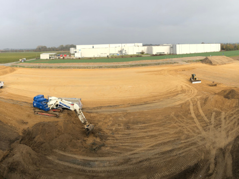 Nachdem wir bereits im Mai 2020 den Auftrag für die Generalplanungsleistungen der Leistungsphasen 1-5 in einer stufenweisen Beauftragung vorab erhielten, werden wir hier in den kommenden Monaten auf ca. 11.000 m² BGF verschiedene Gebäudeteile mit unterschiedlichsten Anforderungen errichten. Hierzu gehören das dreischiffige Tiefkühllager mit zugehörigem zweigeschossigem Maschinenhaus sowie das viergeschossige Verwaltungsgebäude, eine Entsorgungsstation und ein Pförtnergebäude für die neue Zufahrtsregelung des Logistikzentrums. Mit den Erdarbeiten wurde bereits begonnen. Am 23.11.2020 starten wir, wie geplant, mit den Gründungsarbeiten. Die Fertigstellung und Übergabe der Hauptleistung an den Bauherrn ist für Weihnachten 2021 vorgesehen.