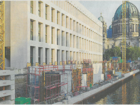 Projektleiter Gerd Wunderlich: „Neben der Nutzung von zwei Hochbaukränen hat sich unter der Voraussetzung erheblich eingeschränkter Lager- und Baustelleneinrichtungsflächen eine „Materialschlacht” entwickelt.” In vier Streckenabschnitten verbaut Ludwig Freytag hier 700 Tonnen Bewehrungsstahl. Auch der Schalungsbau mit seinen 2500 Kubikmetern Frischbeton kann nur unter diesen erschwerten Bedingungen erfolgen – zumal die Anschlüsse an die denkmalgeschützten Brücken aufwendige Zusatzarbeit bedeuteten. Wegen der Denkmalschutzauflagen wird sich die Arbeit noch weit in dieses Jahr hineinziehen. Der anstehende Abschluss im Laufe des Jahres macht die Oldenburger auch stolz. Projektleiter Gerd Wunderlich sagt: „Nach dem Rückbau des alten Palastes der Republik hat die Firma Ludwig Freytag somit an gleicher Stelle die Bau-Geschichte erneut mitgestaltet.”