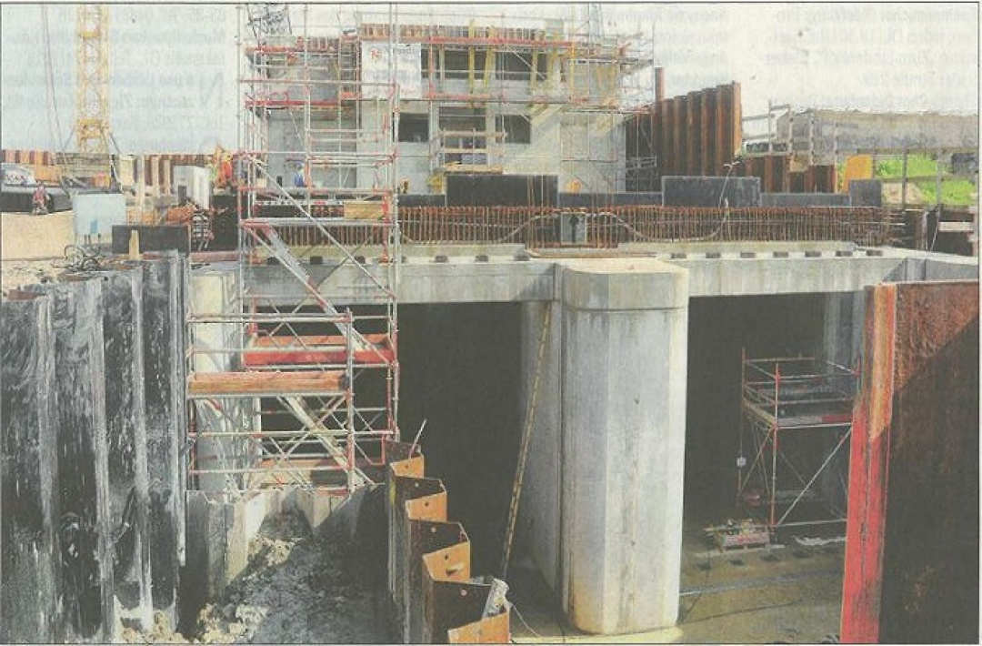 Die beiden Sielzüge sind mit den 75 Meter langen und sechs Meter breiten Tunneln gigantisch. Sie sind durch eine einen Meter breite Betonmauer getrennt. Die Höhe der beiden Züge beträgt 5,10 bis 6 Meter. Sichtbar sind die Spundwände aber nur zu einem kleinem Teil. Die eigentliche Gründung geht viel tiefer, mit den Spundwänden bis zu einer Länge von insgesamt 25 Metern. Begonnen wurde nun mit dem Herausziehen der Stahlspundwände, die die Grube gesichert haben. Die Wasserregulierung läuft derzeit durch zwei alte Sielzüge ab.