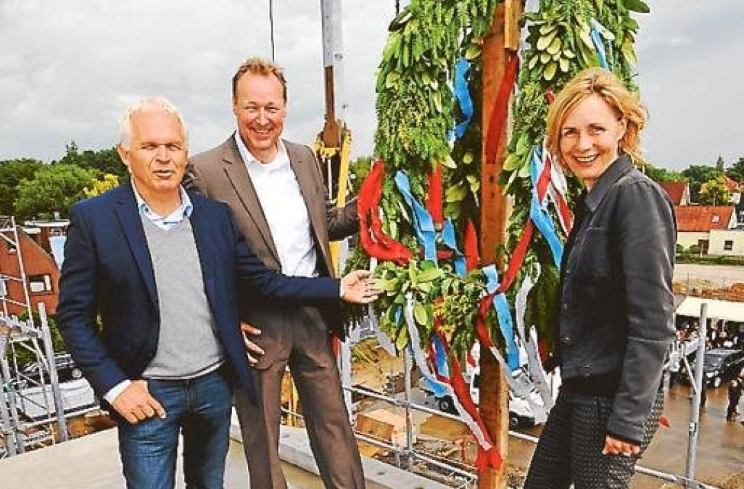 Richtfest auf dem ehemaligen Hubschrauberlandeplatz der Donnerschwee-Kaserne: Am Dienstagnachmittag wurde der Abschluss der Rohbauarbeiten für 228 neue Wohnungen im Wohnquartier Beverbäker Wiesen an der Ammergaustraße gefeiert. 38 Millionen Euro werden investiert.