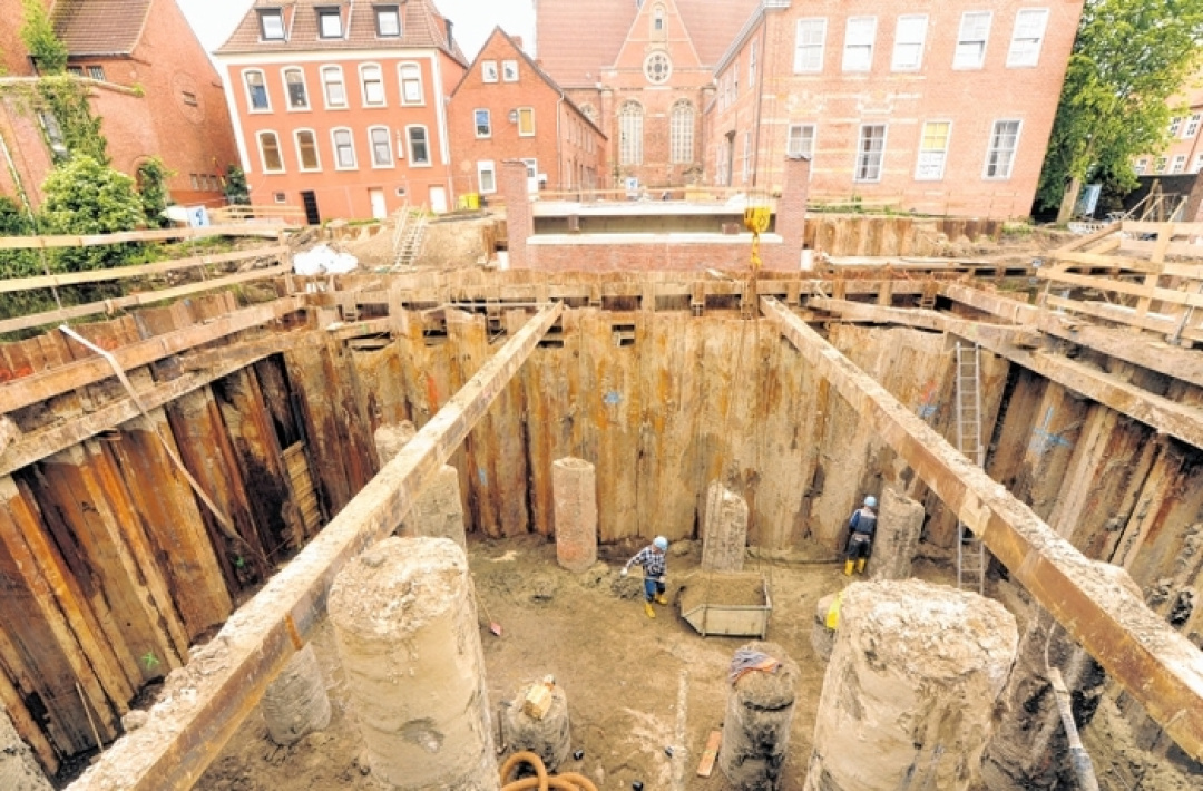 EMDEN - Das Rote Siel in Emden nimmt Formen an. Fast ein Jahr nach dem Startschuss für die Sanierung werden die Konturen der neuen Brücke und der Uferbefestigungen sichtbar. Allerdings haben unerwartete Hindernisse in der Tiefe den ursprünglichen Zeitplan durcheinandergebracht. Die Arbeiten sind in Verzug geraten. Der Rückstand beträgt nach Angaben von Wolfgang Fecht, Projektleiter des Bau- und Entsorgungsbetriebes der Stadt, und Karsten Kowal, Bauleiter des Bauunternehmens Ludwig Freytag, etwa zehn Wochen. Die Firma arbeitet zwar unter Hochdruck, die verlorene Zeit lasse sich aber nicht wieder aufholen. Mittlerweile wird auch fast jeden Sonnabend auf der Großbaustelle gearbeitet. Grund für die Verzögerungen: Die Bauarbeiter waren beim Bau der neuen Stahlspundwände und Brückenpfeiler auf große Mengen Schutt und Holzreste gestoßen. „Es ist unglaublich, was wir hier herausgeholt haben“, sagte Kowal der OZ. Das habe den Baufortschritt „extrem behindert“. Allein aus dem Bereich des Klappenpfeilers der Brücke, in dem später das Gegengewicht liegt, habe man 40 Lastwagenladungen abtransportiert. Zurzeit klafft dort auf der Südseite (Friedrich-Ebert-Straße) noch eine knapp sechs Meter tiefe Baugrube, aus der noch die Köpfe von 14 Betonpfählen für die Gründung herausragen. Darauf kommt in Kürze eine Betonschicht, die mit den Betonpfählen statisch verbunden wird. Mittlerweile fertig ist der so genannte Spitzenpfeiler auf der gegenüberliegenden Seite, auf dem später die Klappenspitze der Brücke aufliegt. Er ist bereits geklinkert worden. Verwendet wurden dafür Wittmunder Klinker.