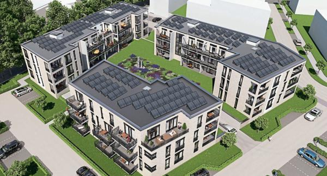GSG vollendet die Landeplatz-Bebauung in den Beverbäker Wiesn.40 neue Eigentumswohnungen mit hohem Energiestandard entstehen im Quartier. Der benötigte Strom wird weitgehend selbst erzeugt.