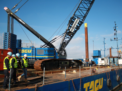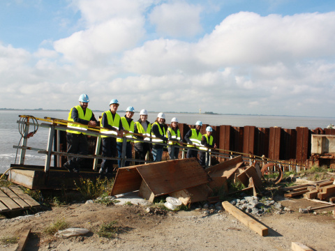 Die Kölner Azubis fuhren gemeinsam mit ihrem Ausbilder nach Bremerhaven und besichtigten eine Baustelle der Firma TAGU zur Herstellung einer Hafenanlage.