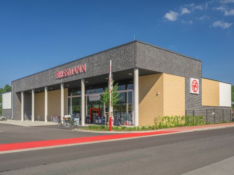 Die neuen Märkte bestechen durch ihr modernes äußeres Erscheinungsbild – eine geteilte Fassade aus weißem Außenputz, Trespa-Platten-Holzoptik und graue Großformatplatten, sowie dunkles Verblendmauerwerk. Das moderne Erscheinungsbild setzt sich auch im Inneren fort. Durch das sichtbare Dachtragwerk aus Fischbauchbindern wird ein Blick bis unter das Trapezblech und die abgehängte technische Gebäudeausstattung ermöglicht.