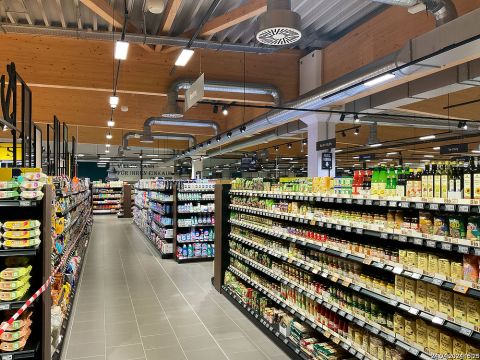 Der gesamte Nutzungsbereich des E-Centers umfasst insgesamt 4.230 m². Technisch ist das Gebäude auf dem aktuellen Stand. Die Beheizung erfolgt über die Abwärme der Kälteanlage, sowie über eine Wärmepumpe. In der gesamten Verkaufsfläche wurde eine Betonkernaktivierung verbaut und punktuell mit einer Fußbodenheizung ergänzt. Die gesamte Haustechnik, inkl. Beleuchtung wird über die MSR geregelt, gesteuert und überwacht. Die Stromversorgung des Centers erfolgt über einen Trafo und eine PV-Anlage.