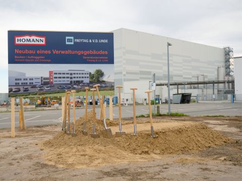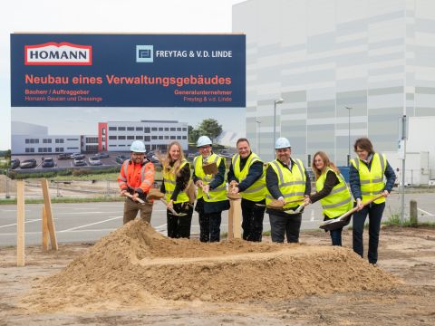 Am 25. September durften wir als Generalunternehmer Freytag & v.d. Linde gemeinsam mit der Homann Feinkost GmbH den Baubeginn für den Neubau eines Verwaltungsgebäudes mit einem feierlichen Spatenstich begehen.