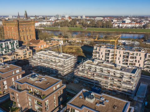 Freytag & v.d. Linde verwirklicht auf der Halbinsel Stadtwerder in Bremen für die BREBAU das Wohnprojekt „Tanzwerder“. Auf einer grünen Insel und doch in wenigen Schritten in der Stadt – das ist Wohnen in einem besonderen Rahmen. In dieser außergewöhnlichen und individuellen Wohnlage entstehen zwei Gebäude mit insgesamt 40 hochwertigen Eigentumswohnungen.