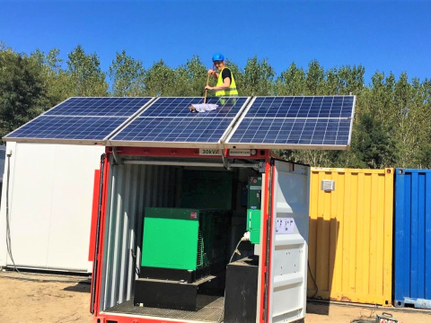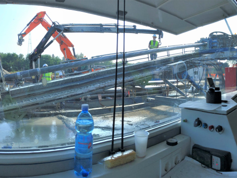 Durch die hohe Leistungsbereitschaft der beiden Bohrkolonnen vergingen nur 13 Tage zwischen dem Beginn der Pilotbohrungen und dem erfolgreichen Einzug des Produktrohres. Die durchaus langen sonnigen Tage mit Temperaturen über 30°C im September dieses Jahres kamen vor allem dem eingesetzten Hybrid-Generator zu Gute. Dieser speichert durch Photovoltaik-Module erzeugten Strom in einem Batteriespeicher, womit dann die Werkstatt- und Mannschaftscontainer umweltfreundlich mit Strom versorgt wurden.