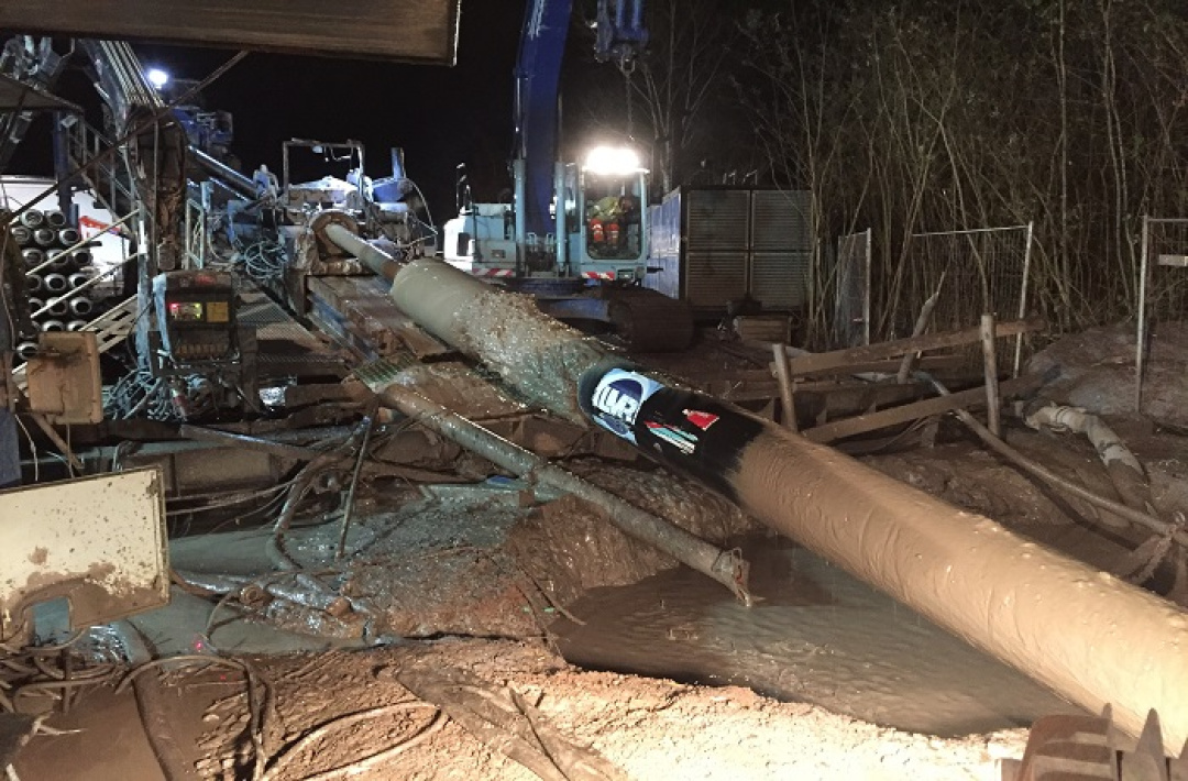 Die Verlegung des ca. 1.700 m langen Teilabschnittes im HDD-Verfahren (Horizontal Directional Drilling = gesteuertes Horizontalspülbohrverfahren) stellte für alle Beteiligten die Vorzugsvariante dar.