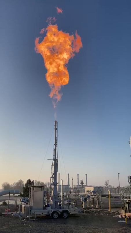 Bei Wartungs- und Instandhaltungsarbeiten, wo Rohrleitungsabschnitte druckreduziert werden oder Gas unter regulären Betriebsbedingungen abgelassen werden muss, kann unsere mobile Fackel schnell und effektiv zum Einsatz kommen. Restmengen von Erdgas können restlos und klimaschonend verbrannt werden.
