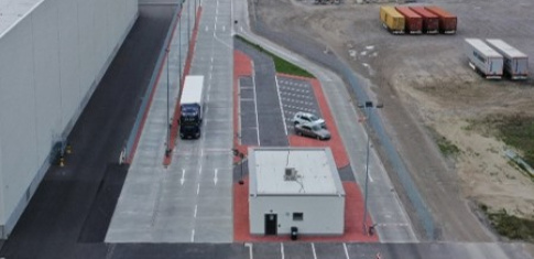 Neubau einer vierspurigen Hauptzufahrt mit Pförtnergebäude